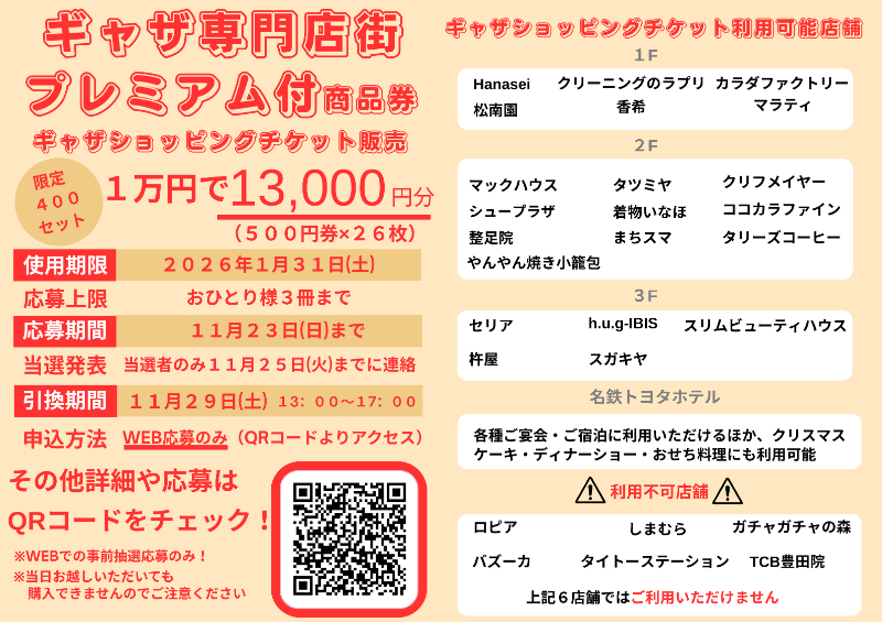 イベント「ギャザショッピングチケット」抽選販売のお知らせ2025,11,10