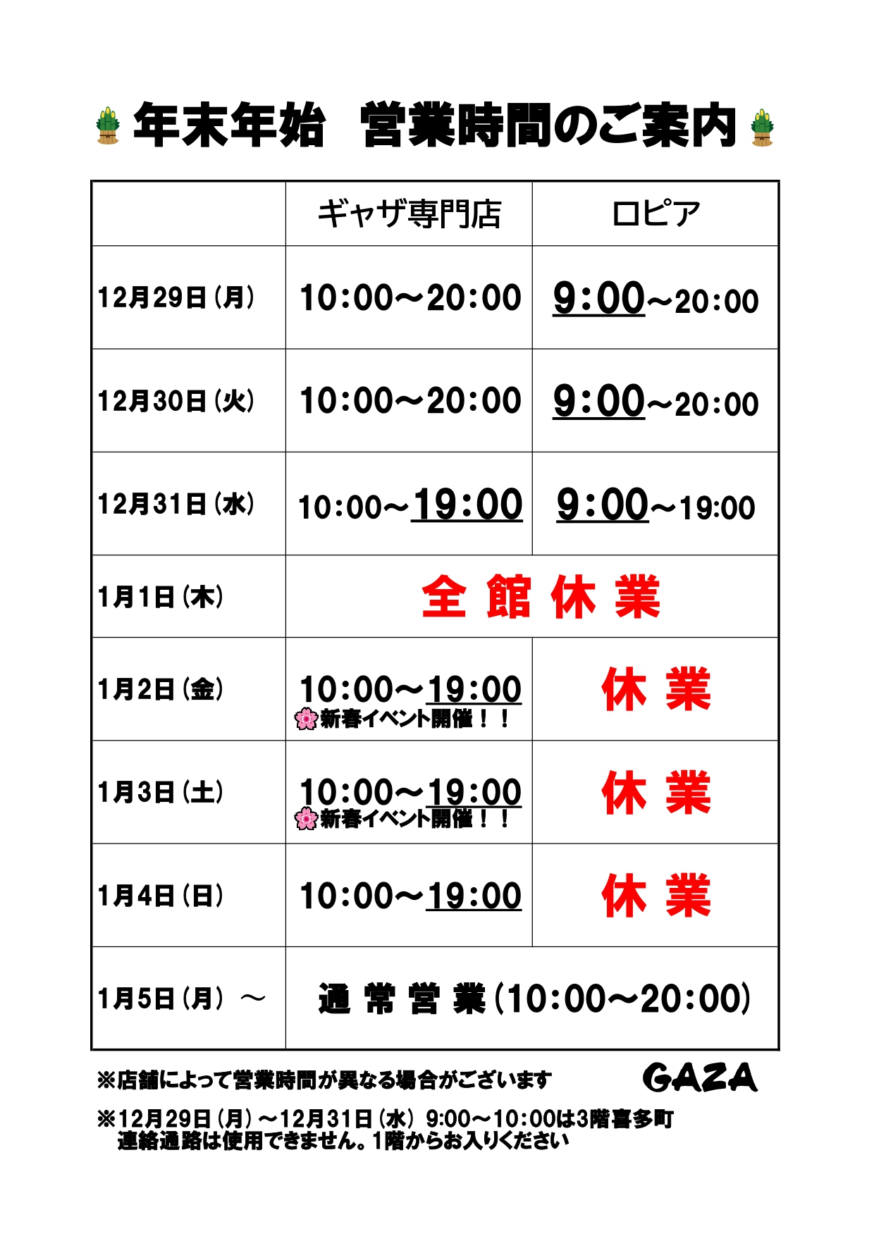 ※12月29日(月)~12月31日(水) 9:00~10:00間は3F喜多町連絡通路を通ってロピアに行くことはできません